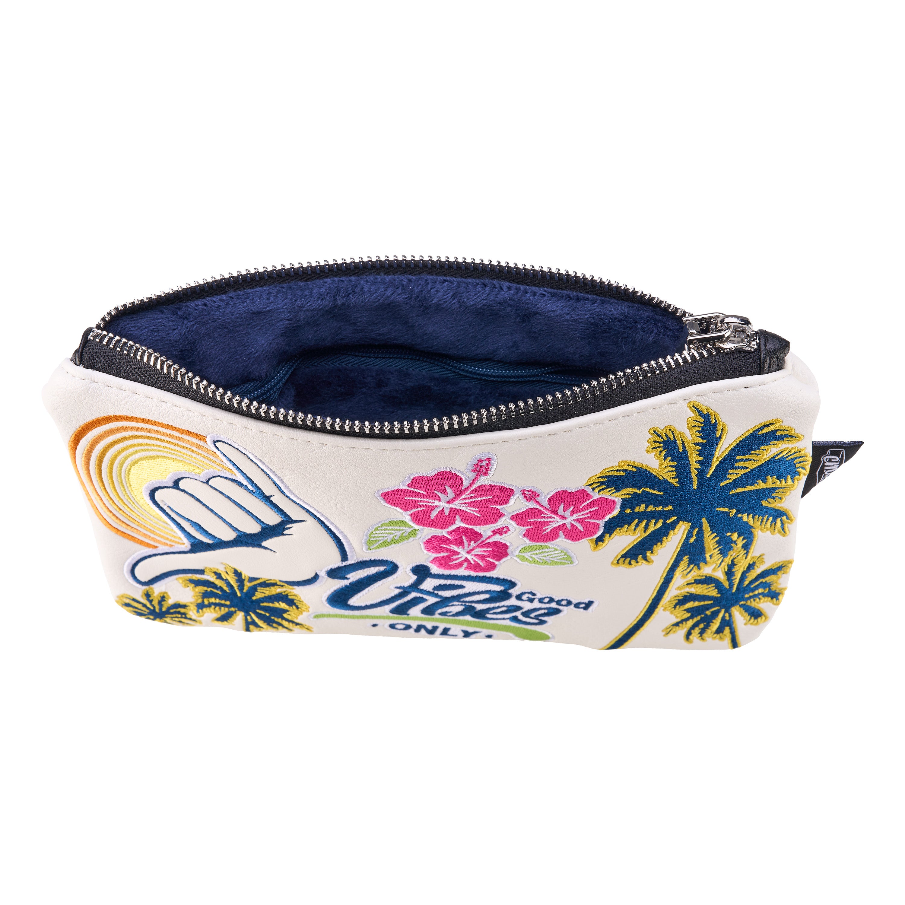 Keep your essentials safe and stylish with our Good Vibes Only Valuables Pouch. This pouch is more than just a statement piece, It’s crafted to hold all necessary valuables including your phone, wallet, and keys to course must-haves like tees, gloves and balls. The bold design adds a unique touch, while the plush interior and durable zipper ensure your items stay secure—whether you're on the fairway or on the move!