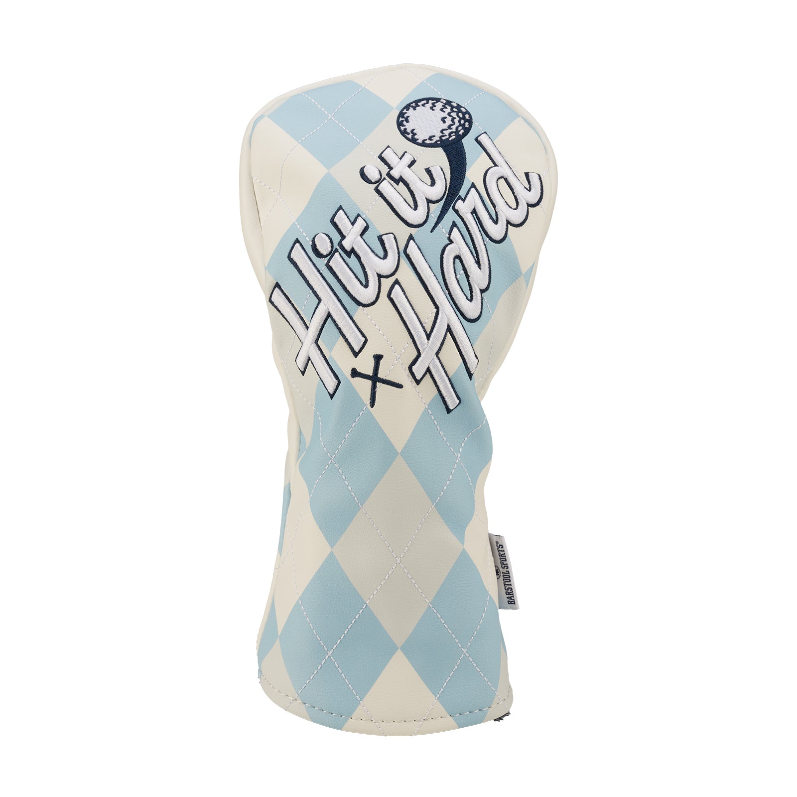 Elevate your golf bag with a Custom Fairway Headcover from our Barstool Golf Collection. Our Golf Headcovers are uniquely designed in-house, and combine meticulous craftsmanship with a plush inner lining to protect your investment. Add a touch of personality and enhance your golf game in style with the Barstool Sports "Hit it Hard" Argyle Fairway Cover.
