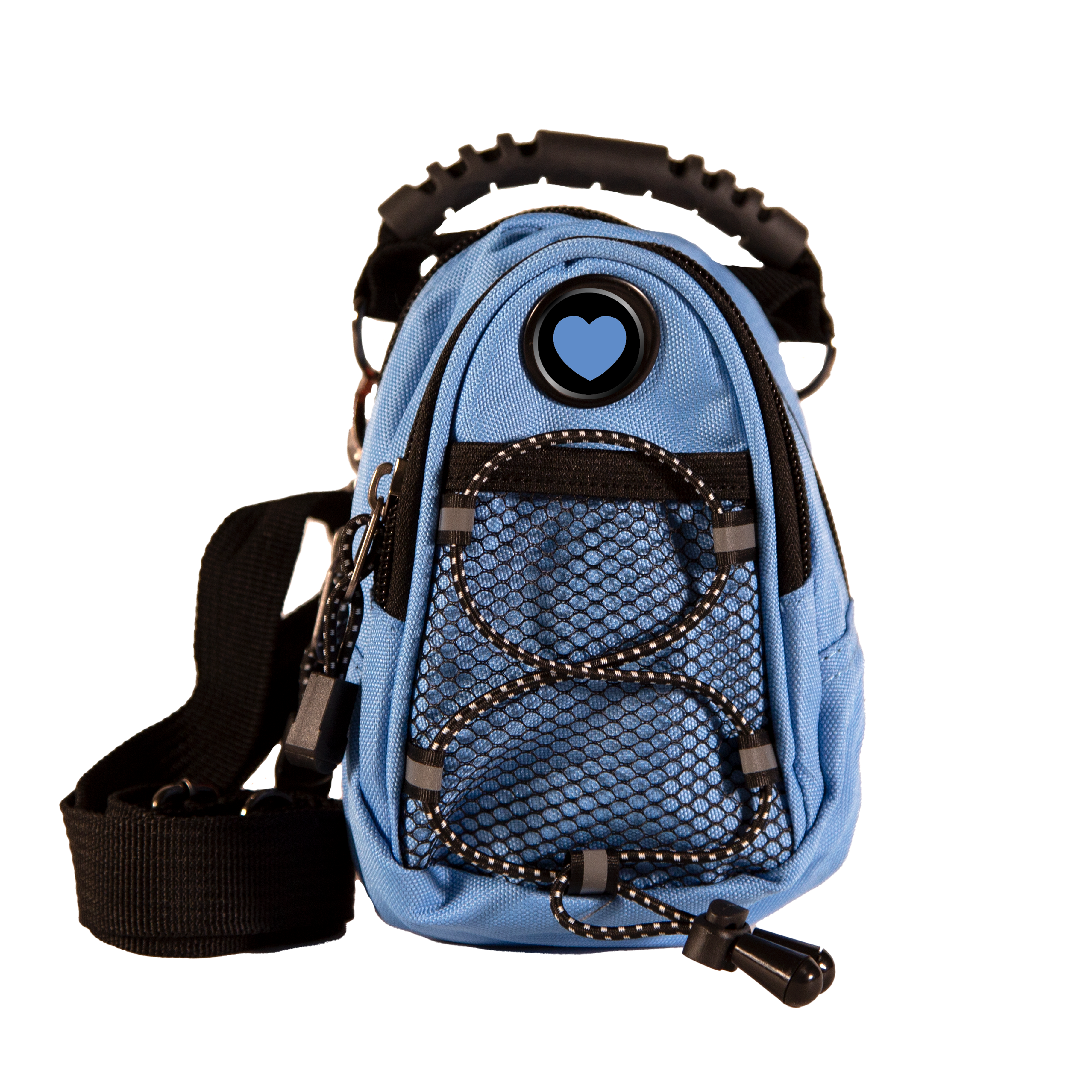 • Handle to carry, carabiner to clip it, or use strap to wear over shoulder, cross chest or on a belt