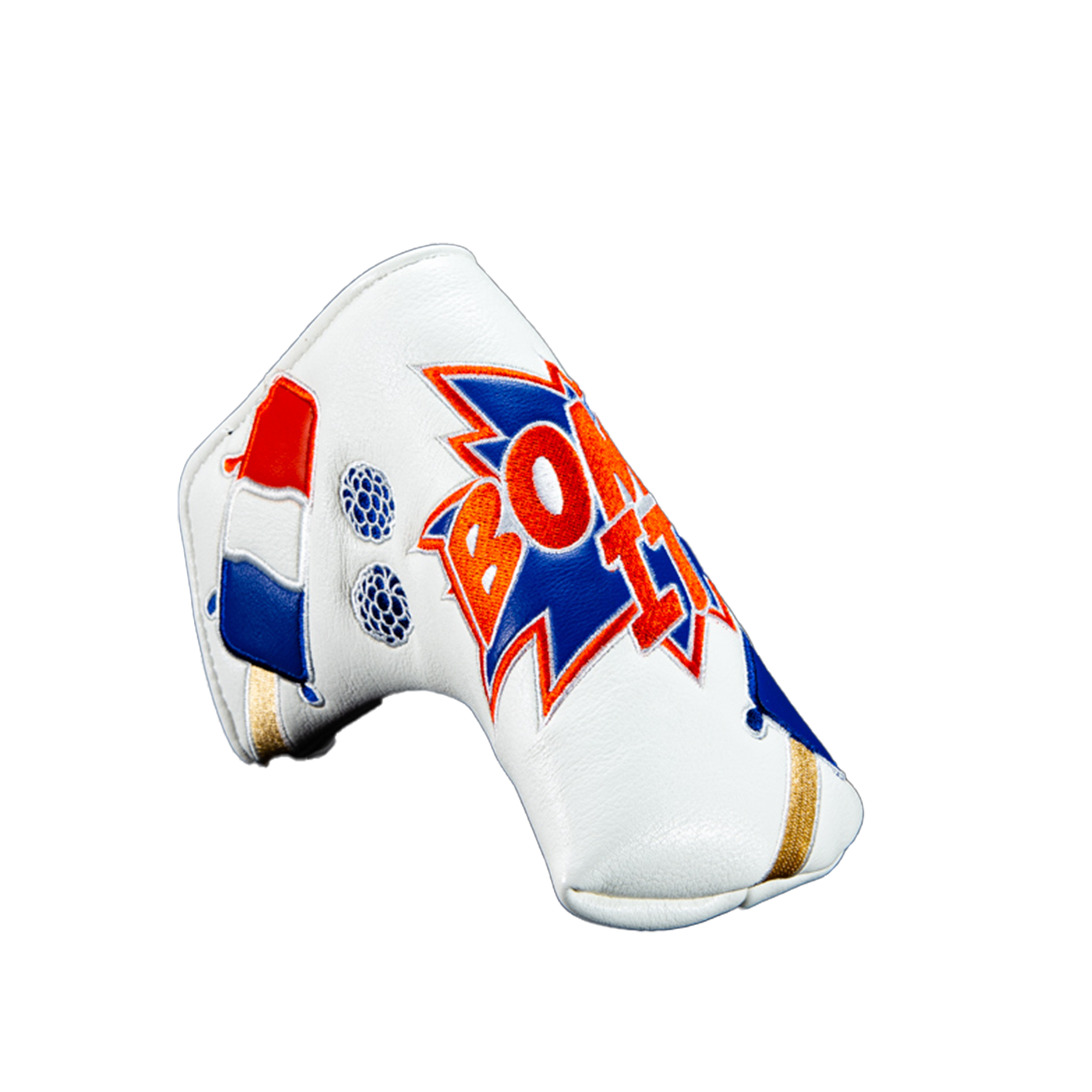 Elevate your golf bag with a Custom Blade Putter Headcover from our Bomb It Collection. Our Golf Headcovers are uniquely designed in-house, and combine meticulous craftsmanship with a plush inner lining to protect your investment. Add a touch of personality and enhance your golf game in style with the Bomb It Blade Putter Cover.