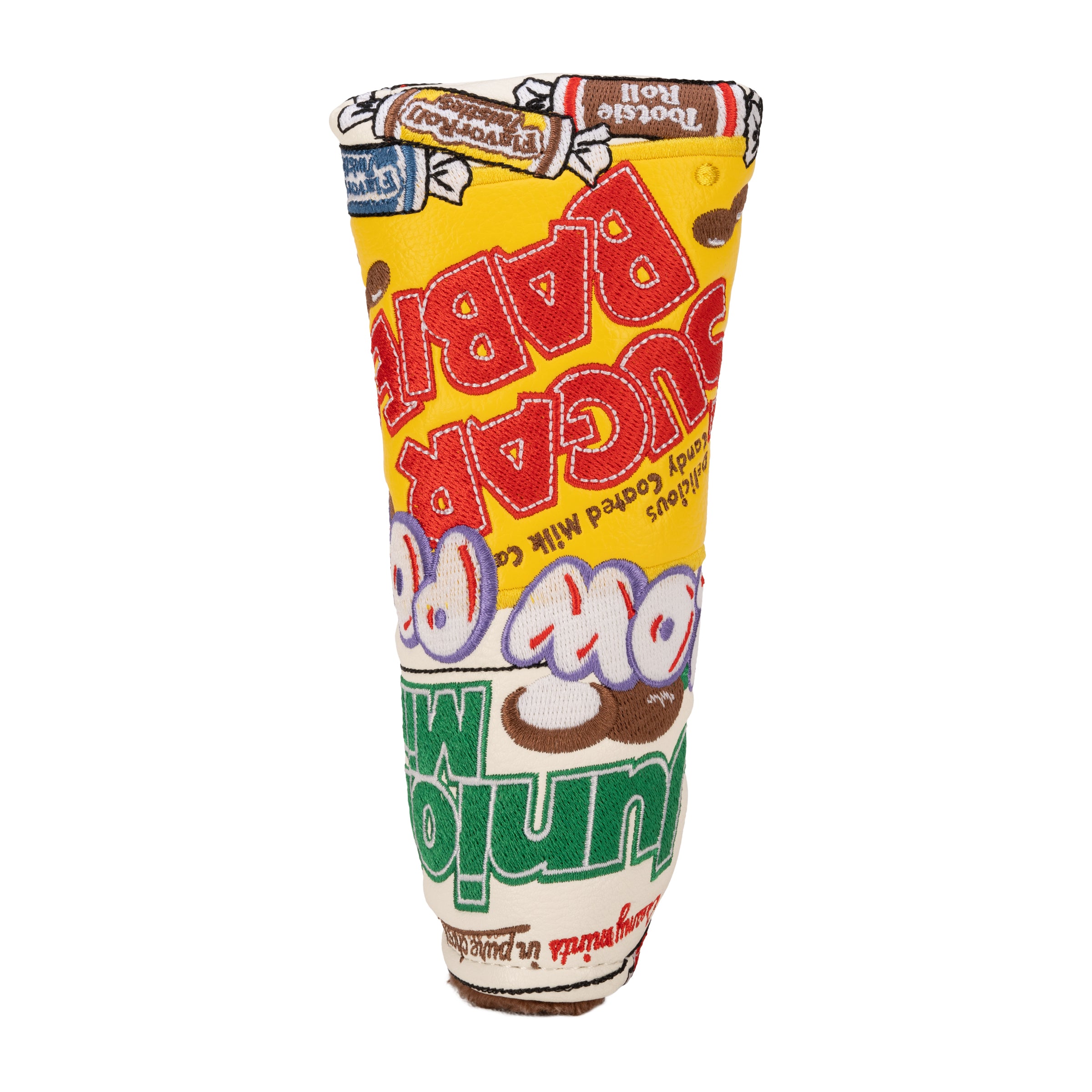 Elevate your golf bag with a Custom Blade Putter Headcover from our Tootsie Roll Collection. Our Golf Headcovers are uniquely designed in-house, and combine meticulous craftsmanship with a plush inner lining to protect your investment. Add a touch of personality and enhance your golf game in style with the "Sweet Tooth" Blade Putter Cover.