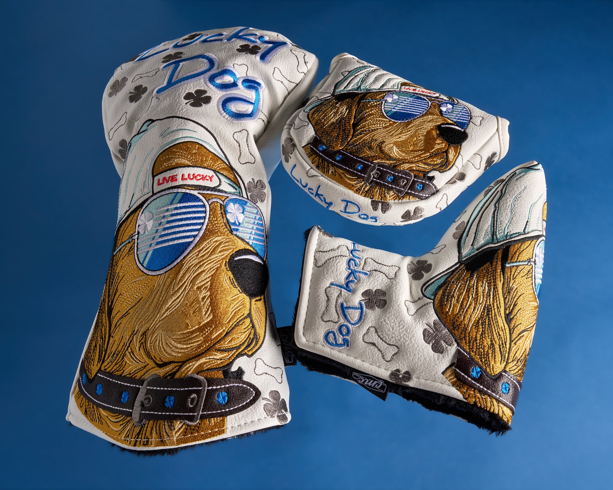 Elevate your golf bag with a Custom Driver Headcover from our Black Clover "Live Lucky" Collection. Our Golf Headcovers are uniquely designed in-house, and combine meticulous craftsmanship with a plush inner lining to protect your investment. Add a touch of personality and enhance your golf game in style with the Live Lucky "Lucky Dog" Driver Headcover.