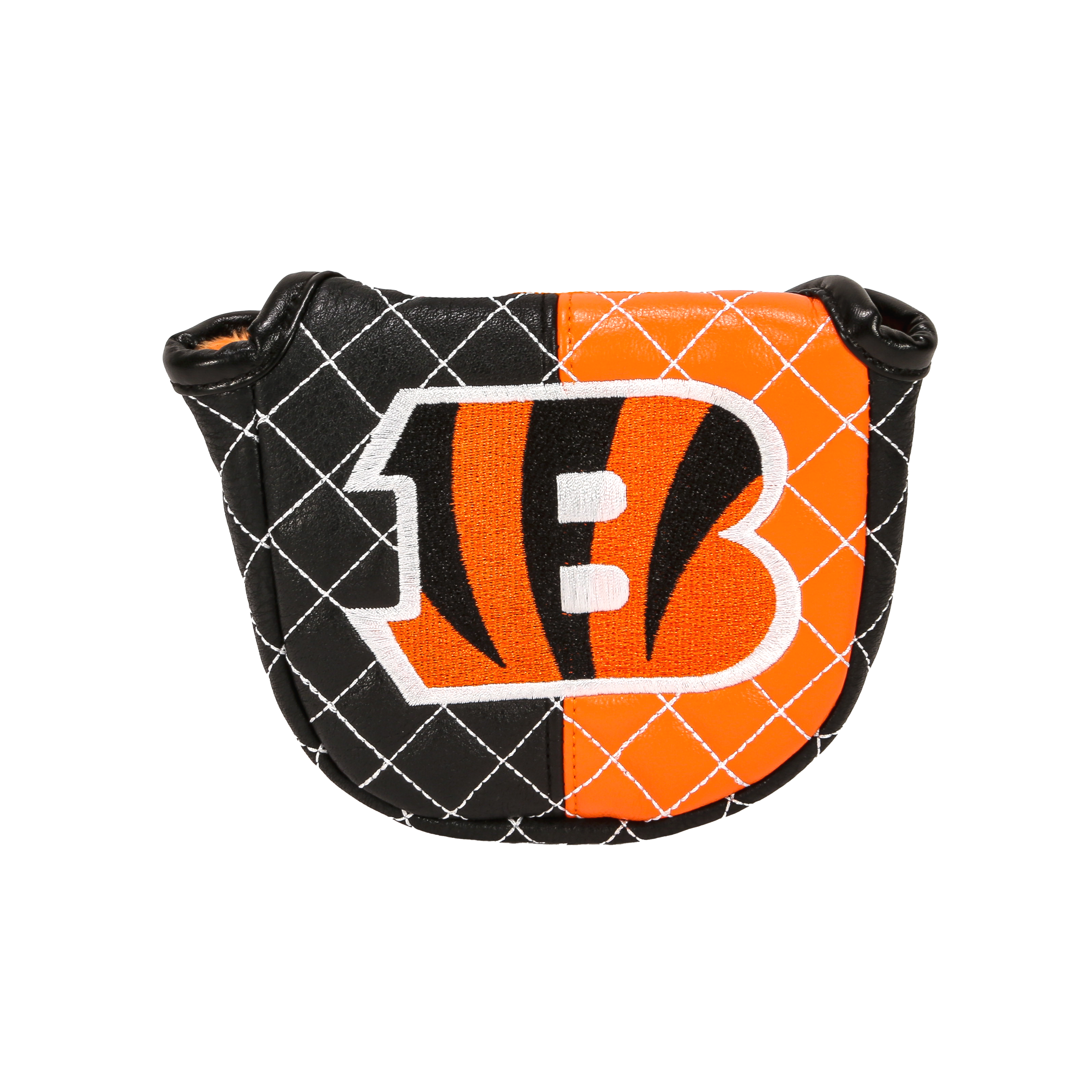 Elevate your golf bag with a Custom Mallet Putter Headcover from our Cincinnati Bengals Collection. Our Golf Headcovers are uniquely designed in-house, and combine meticulous craftsmanship with a plush inner lining to protect your investment. Add a touch of personality and enhance your golf game in style with the Cincinnati "Bengals" Mallet Putter Cover.