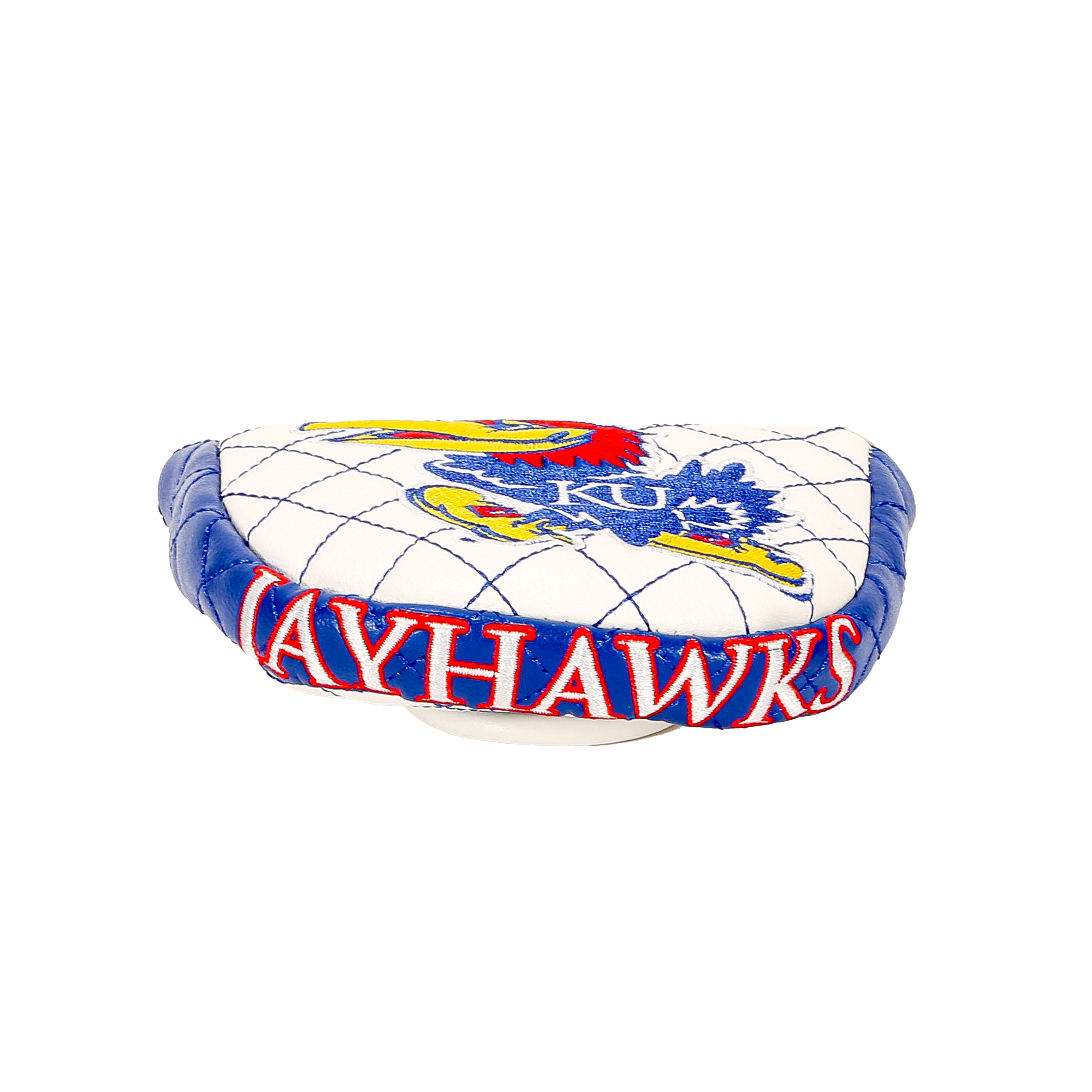 Elevate your golf bag with a Custom Mallet Putter Headcover from our University Of Kansas Collection. Our Golf Headcovers are uniquely designed in-house, and combine meticulous craftsmanship with a plush inner lining to protect your investment. Add a touch of personality and enhance your golf game in style with the Kansas "Jayhawks" Mallet Putter Cover.