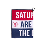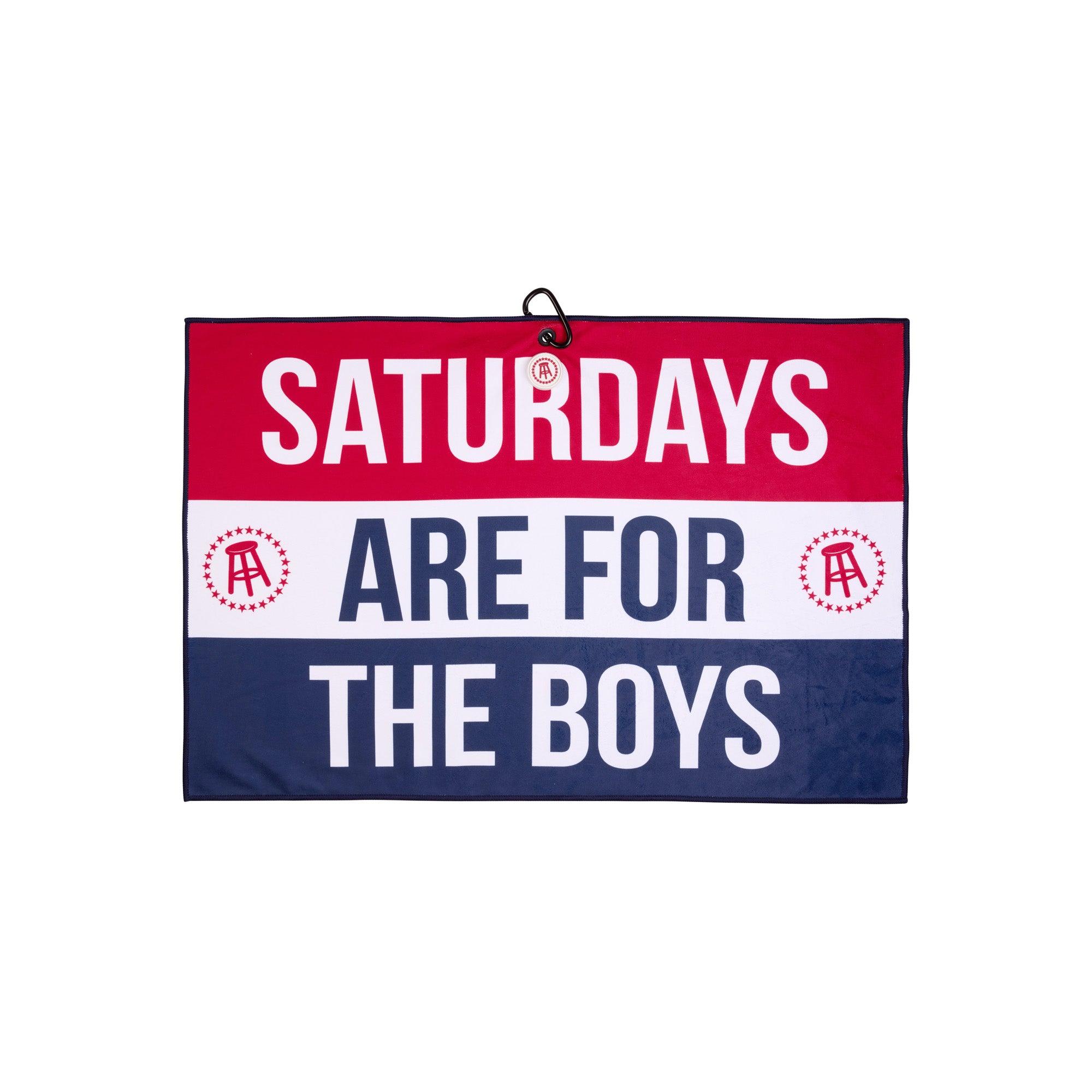 Saturdays are for the boys. . . to play golf. Keep your gear clean and dry with our Barstool Golf “SAFTB” Quick Stick Golf Towel 18X27, featuring a premium ribbed fabric. This red, white, and blue Barstool towel is a staple for the course with its ultimate absorbency and carabiner clip to conveniently attach to your golf bag. Effortlessly pick up moisture and debris for your gear to stay looking brand new. It’s the best golf towel that shows up when the group chat turns into a tee time.