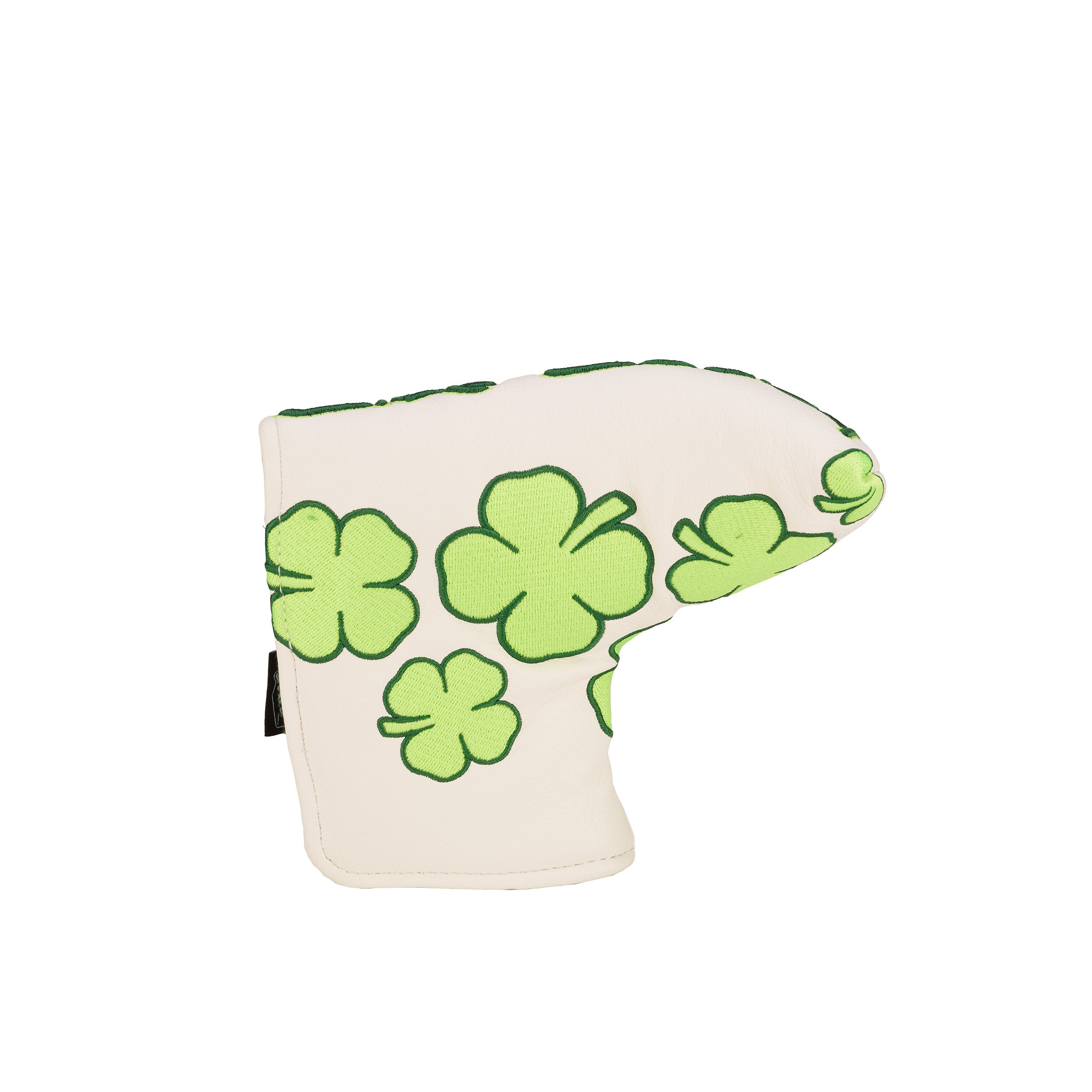 Elevate your golf bag with a Custom Blade Putter Headcover from our Black Clover "Live Lucky" Collection. Our Golf Headcovers are uniquely designed in-house, and combine meticulous craftsmanship with a plush inner lining to protect your investment. Add a touch of personality and enhance your golf game in style with the Live Lucky "Green With Envy" Blade Putter Cover.